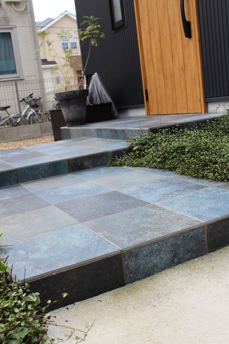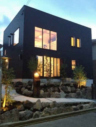 道路との高低差をどう解消するかという課題があるなか、擁壁は費用がかかって味気ないので、坂道のスロープはできませんかとのご相談。ご提案したのはロックガーデン。弊社職人が長年の経験と技術を生かして、石を選んで配置しました。アプローチには照明を取り入れて演出とともに防犯、安全面にも配慮しています。家と外構のバランスがとれた永く愛されるデザインになりました。