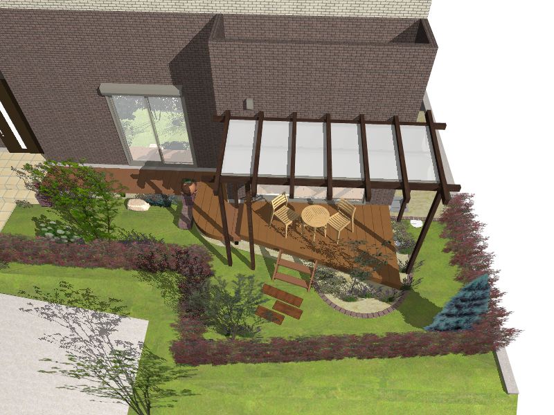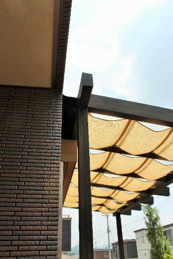 デッキと日除けのあるナチュラルガーデン