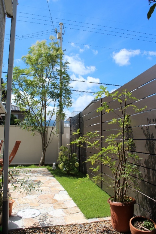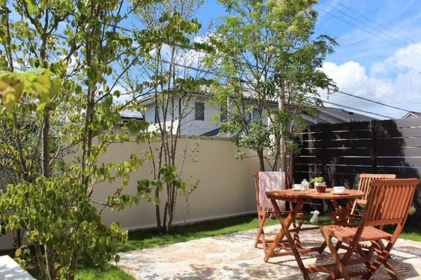 「木もれ日の中でお茶を飲みながら過ごせるようなお庭にずっと憧れていました。その夢がかなって本当にうれしいです。主人も庭ができてからは芝生の手入れを担当してくれたり、子どももお友だちとレゴをしたり庭で楽しんでいます♪」