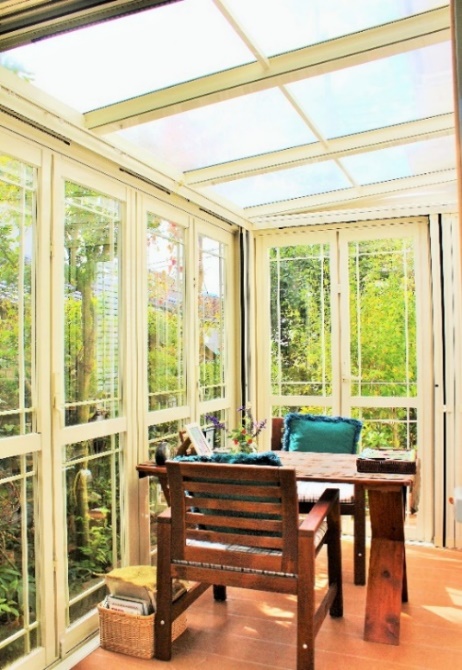 ご主人が作られたデッキはありましたが、冬は吹きさらし、夏は虫に刺されるなど、あまり実用的ではありませんでした。そんななか、弊社山口町のショールームでガーデンルームを体感され、リフォームが具体的に。広さに制限がありましたが、3方向に扉を付けることで動線を確保し、スペースを有効活用することができました。